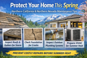Spring in Northern California and Northern Nevada is the season when homeowners discover what winter quietly did to their homes. Rain, wind, freeze-thaw cycles, and temperature swings can cause small issues that quickly turn into expensive repairs if ignored.